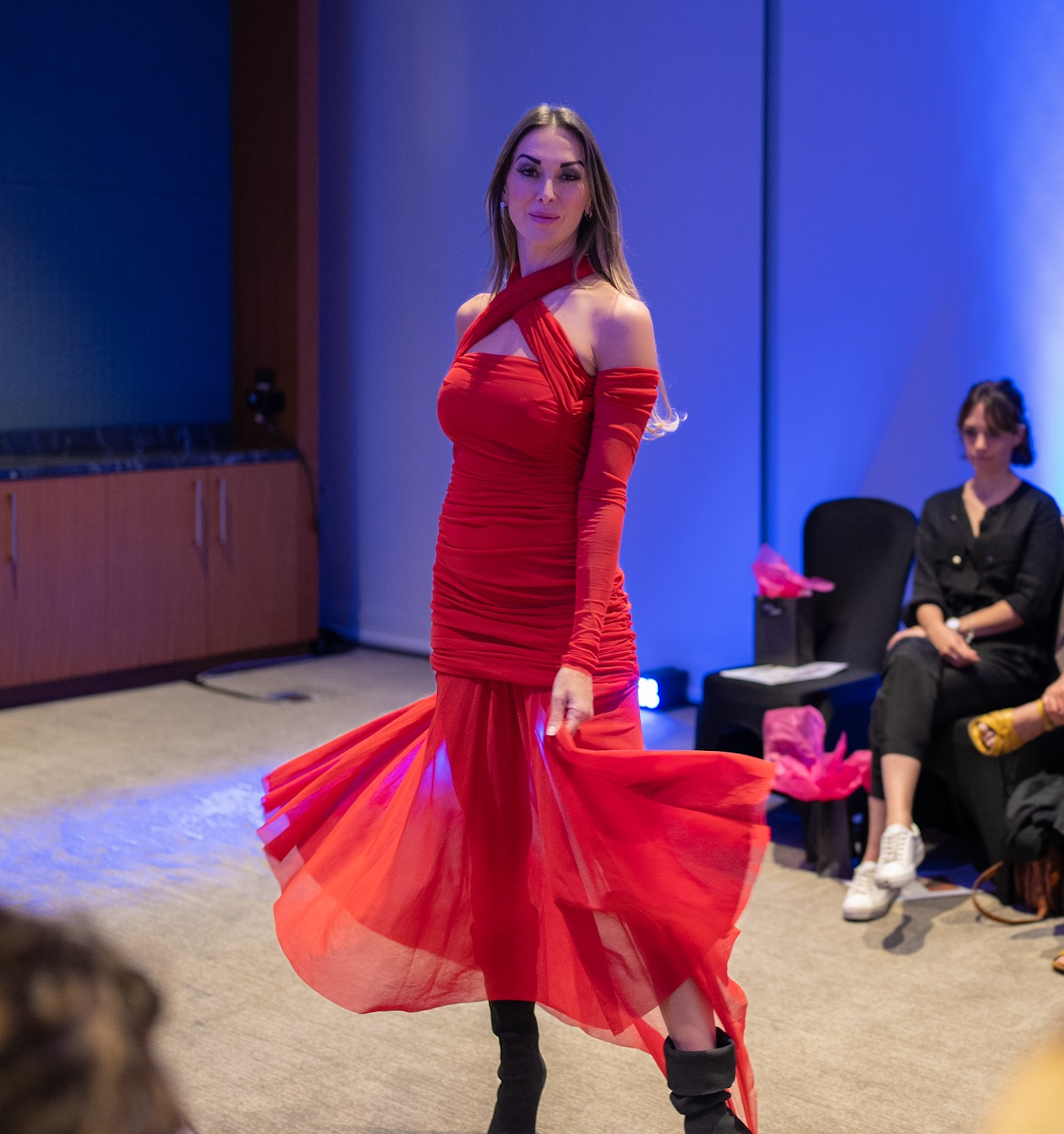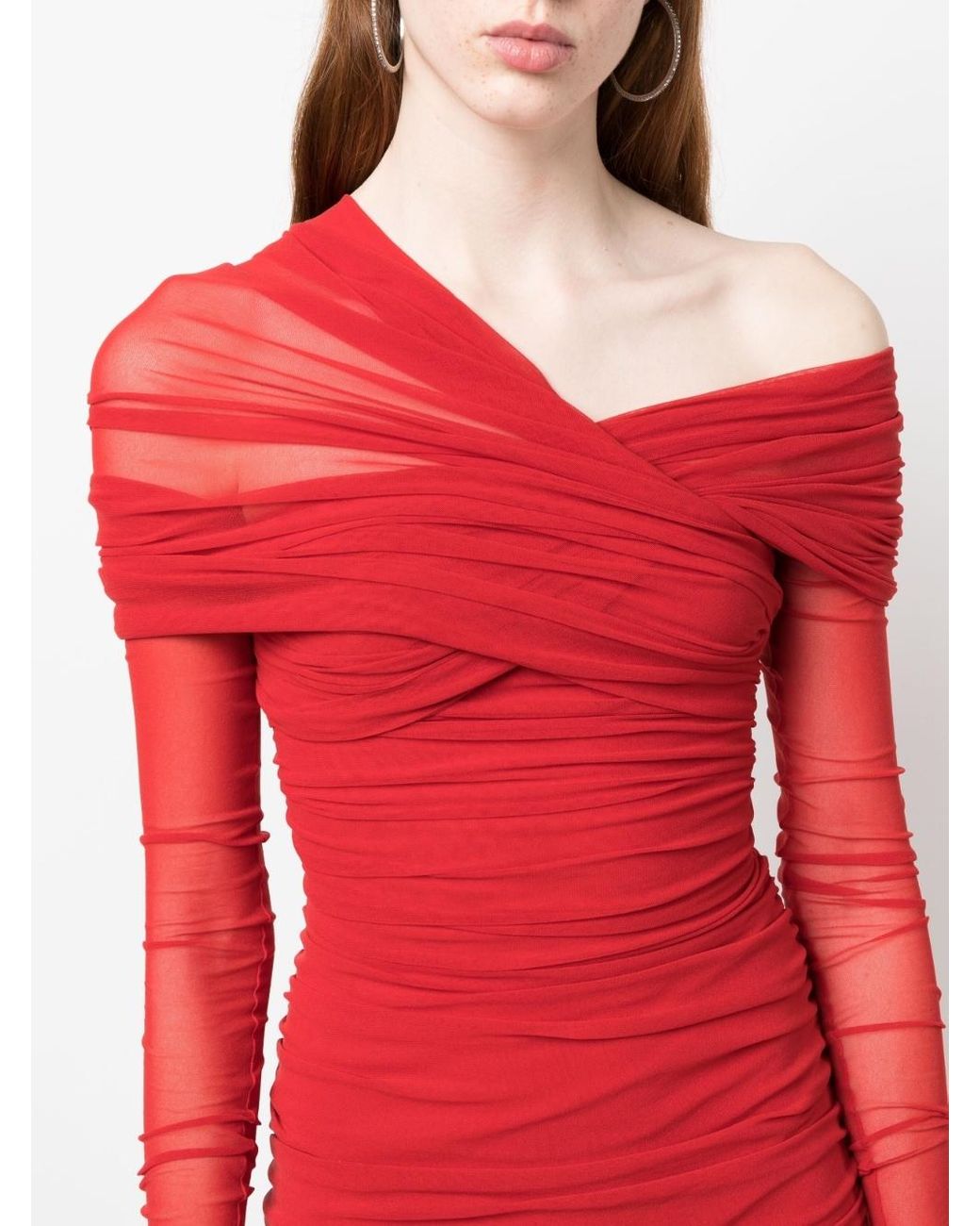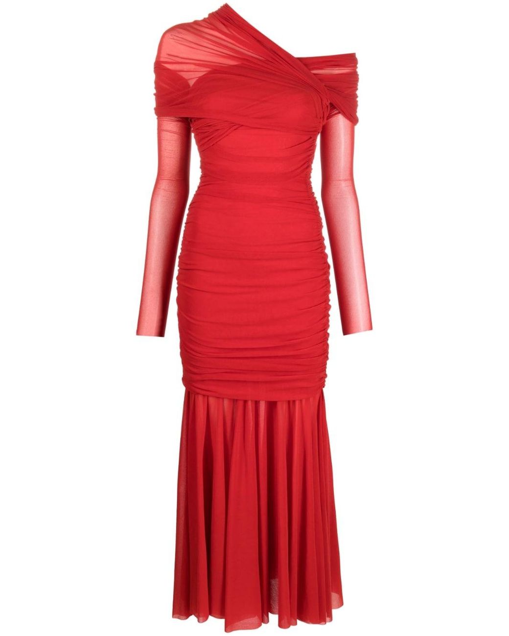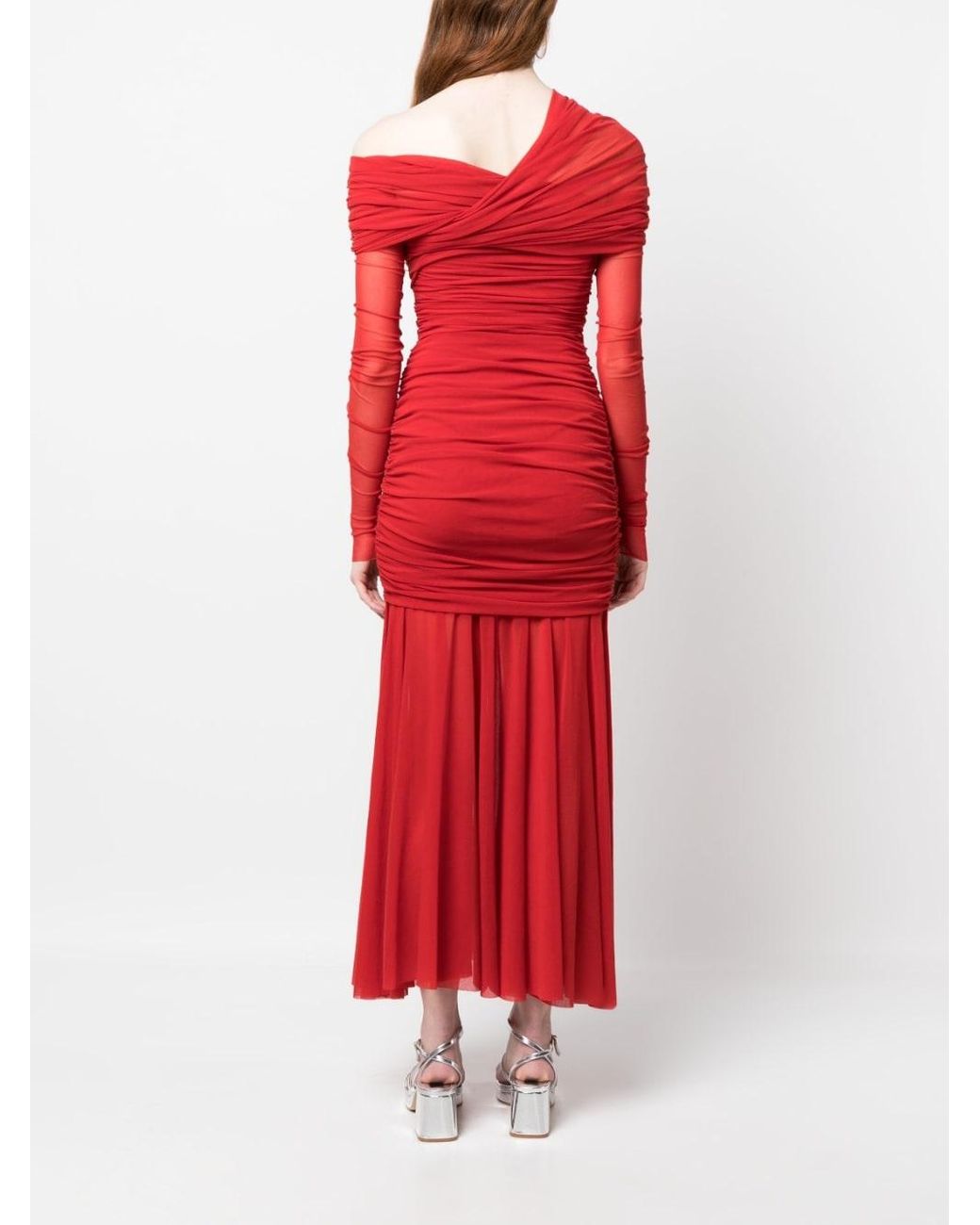 Philosophy Di Lorenzo – Long Stretch Draped Tulle Dress in Red